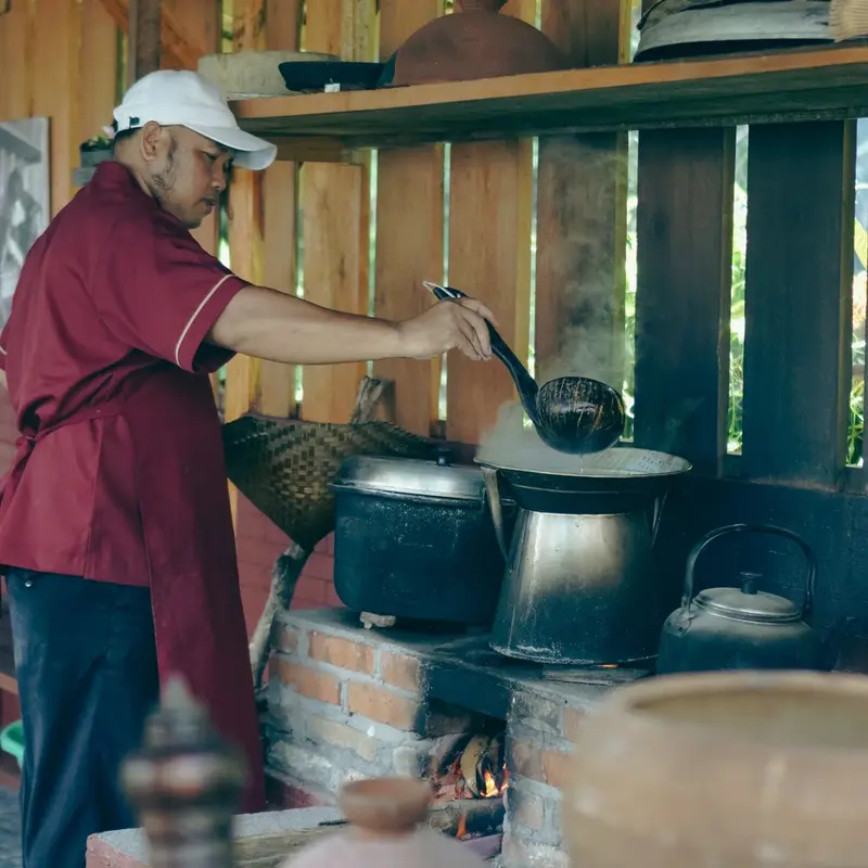 Take a peaceful stroll through our lush Pak Oles herbal garden filled with tropical herbs, medicinal plants, and flowers traditionally used in Balinese healing and cooking.